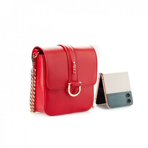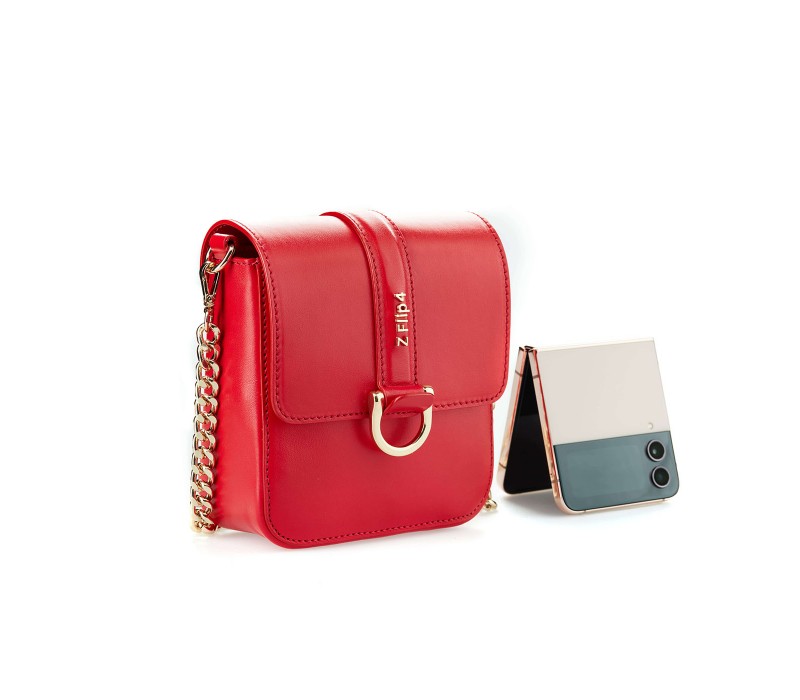 Geanta Flip The Contrasts pentru Galaxy Z Flip4, piele naturala, Rosu