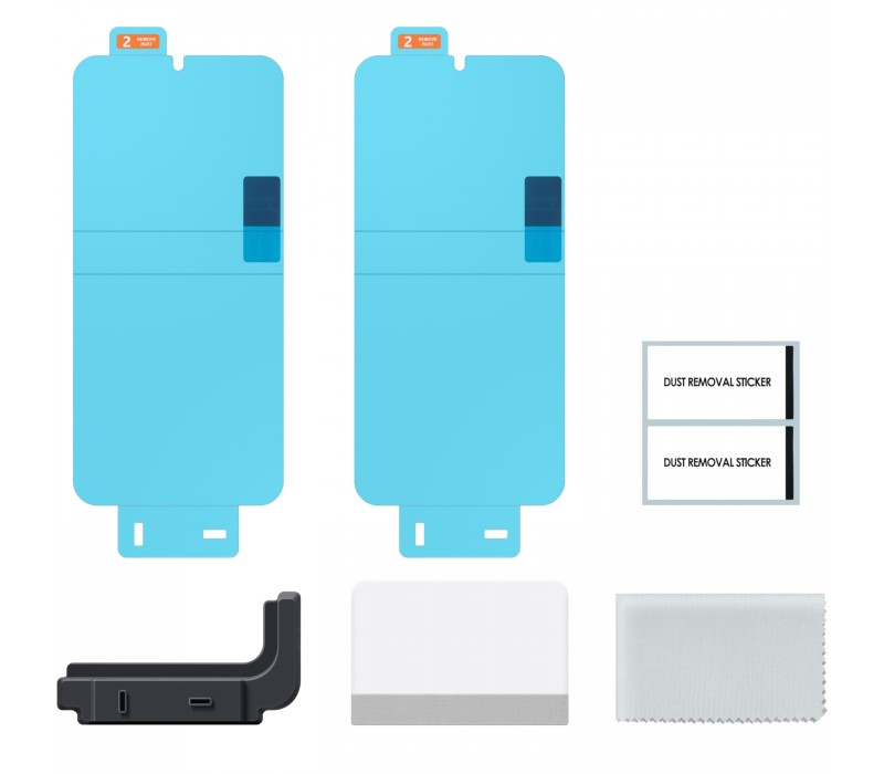 folie de protectie 2 bucati, aplicator, laveta microfibra, autocolant, racleta.
