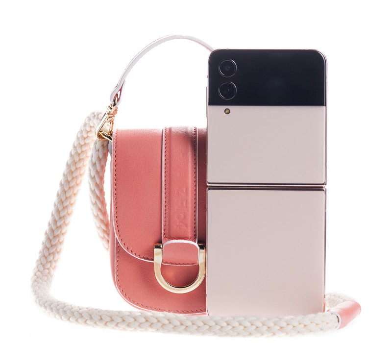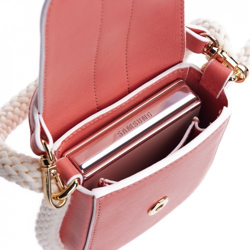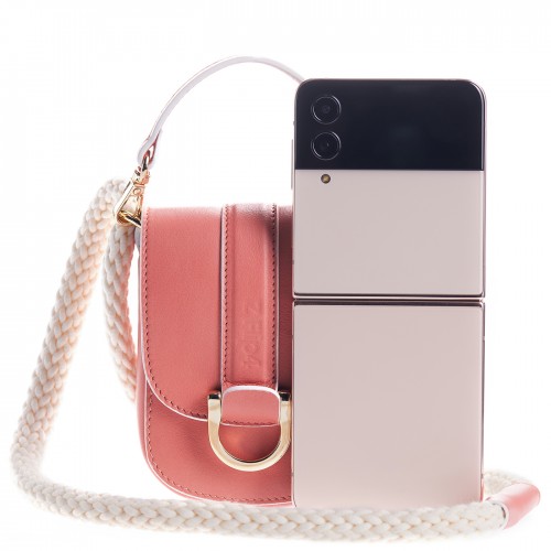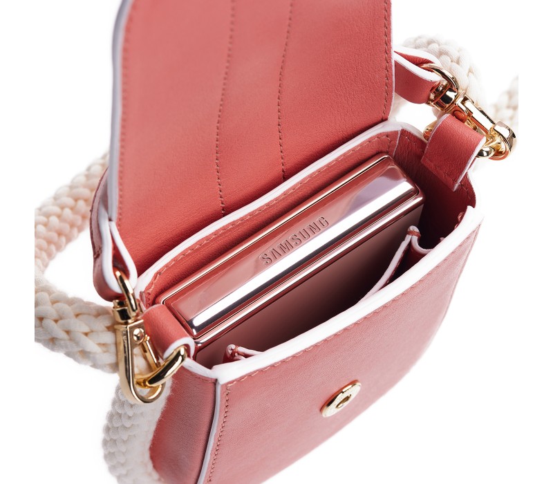Geanta Flip The Rules pentru Galaxy Z Flip4, piele naturala stampata, Alb/Roz